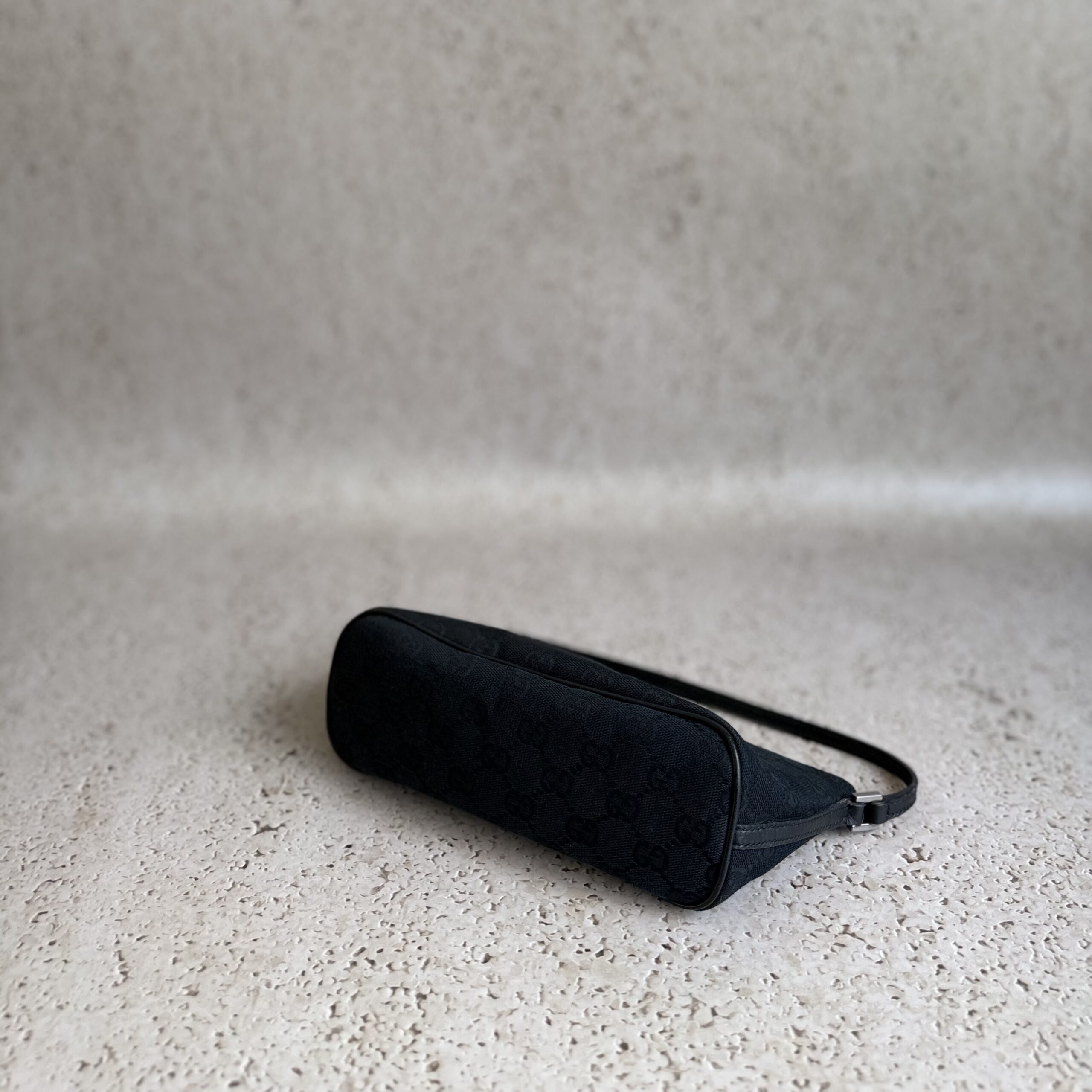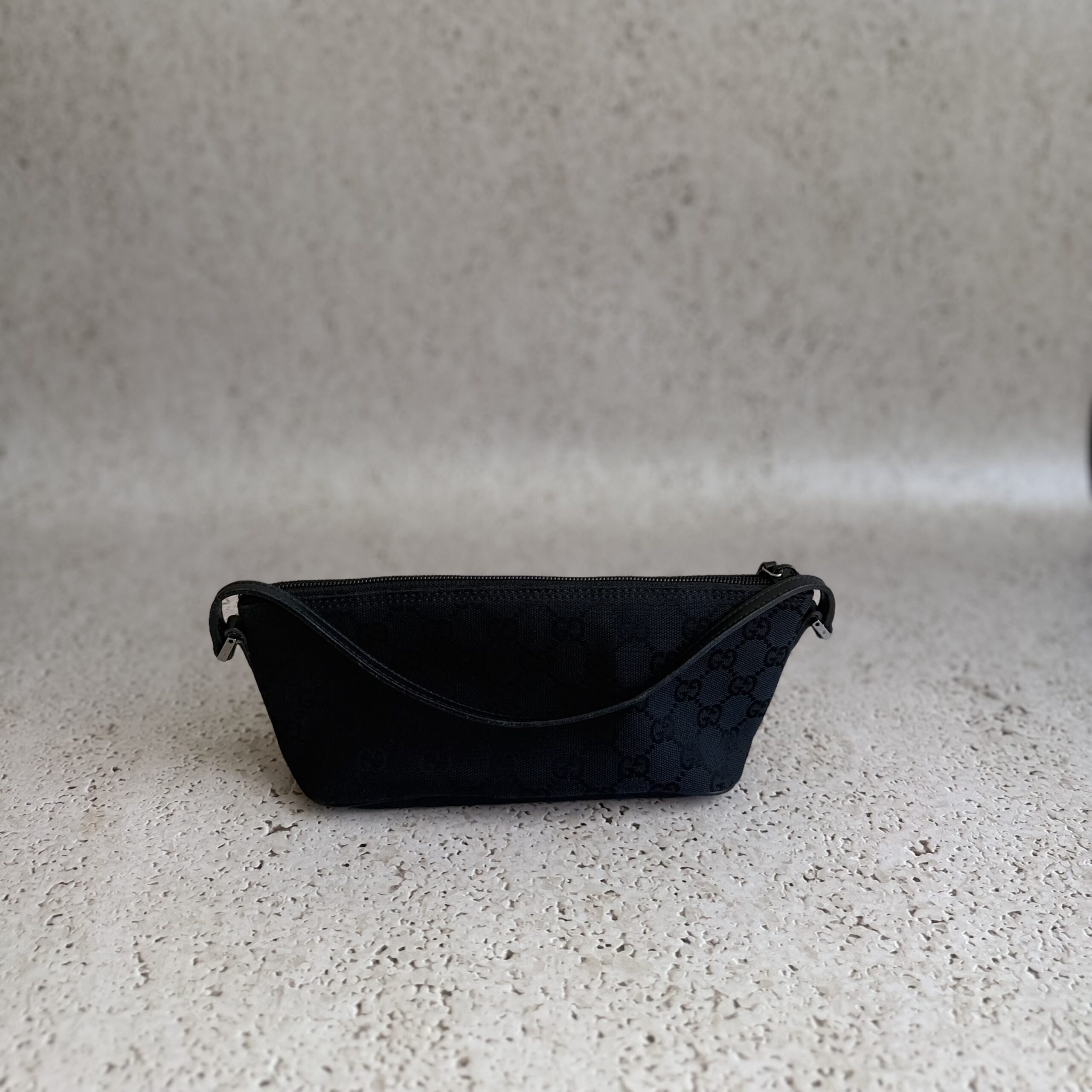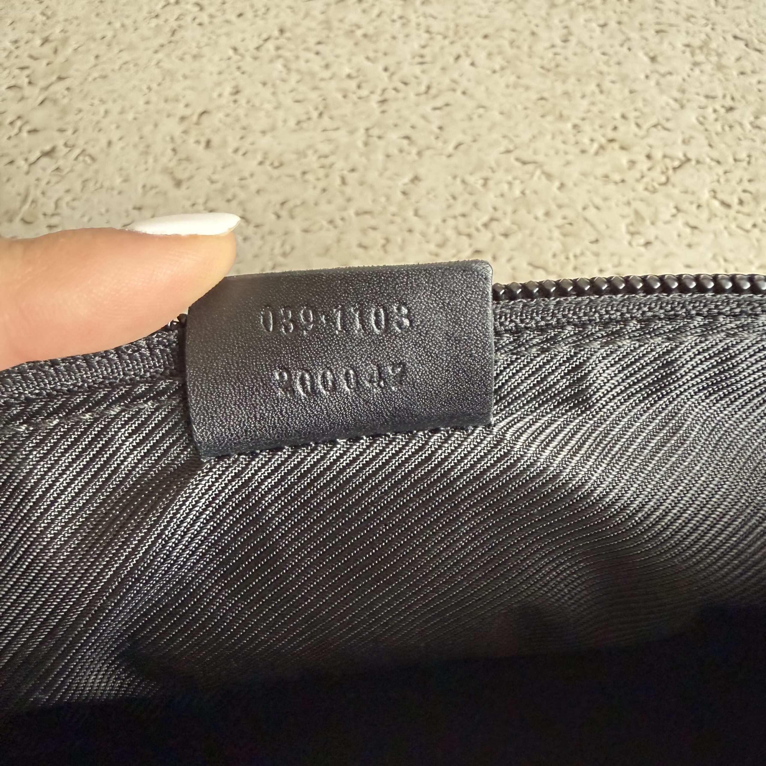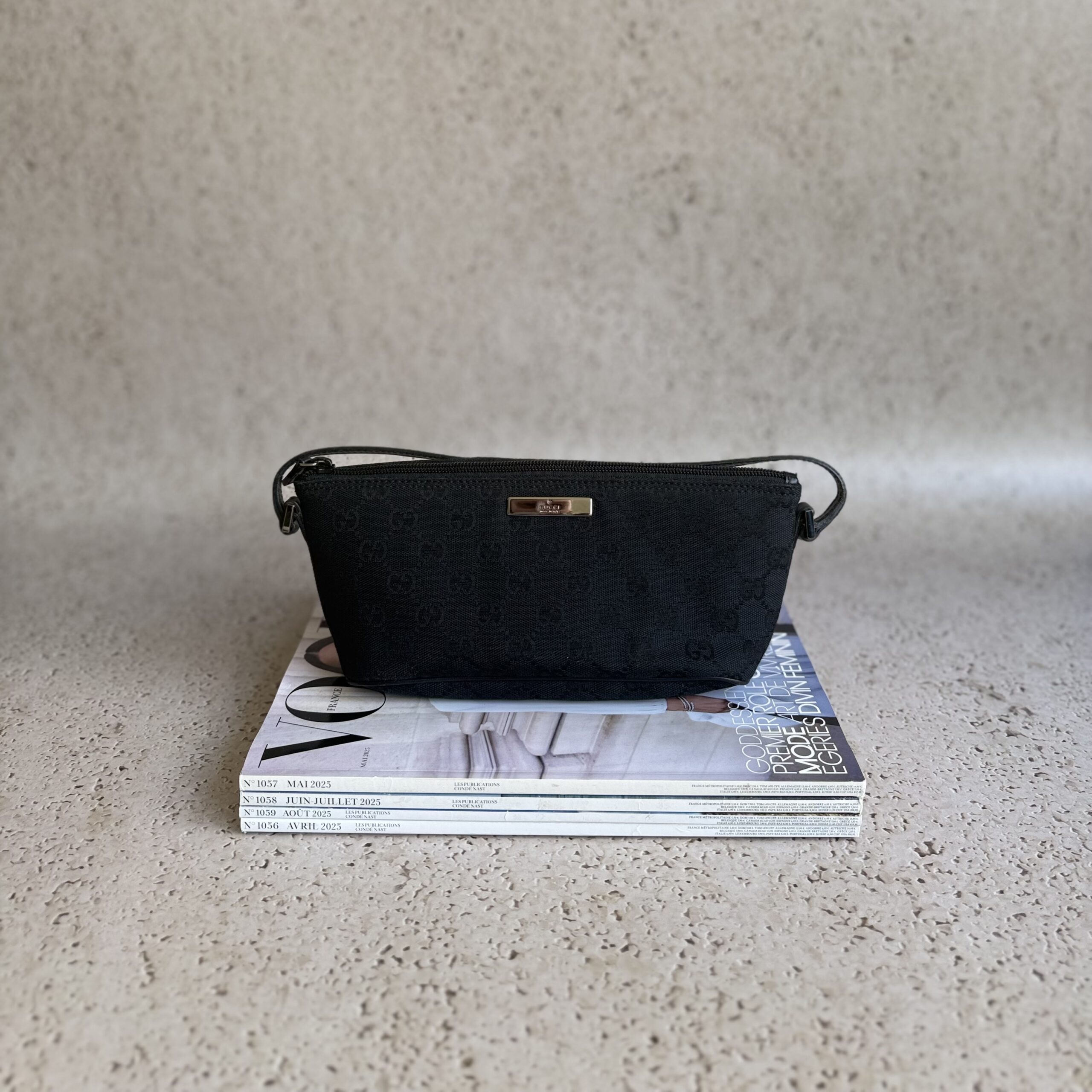 The Gucci Boat Bag in black is a timeless and instantly recognizable piece, crafted from Gucci’s signature GG canvas. The sleek black tones of the canvas give this bag a bold yet sophisticated look, making it a versatile companion for any occasion.