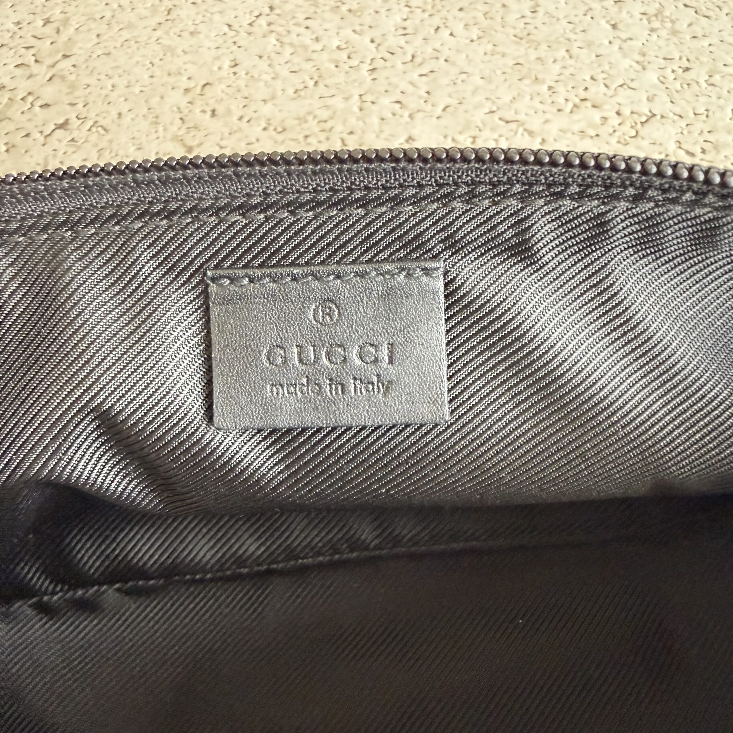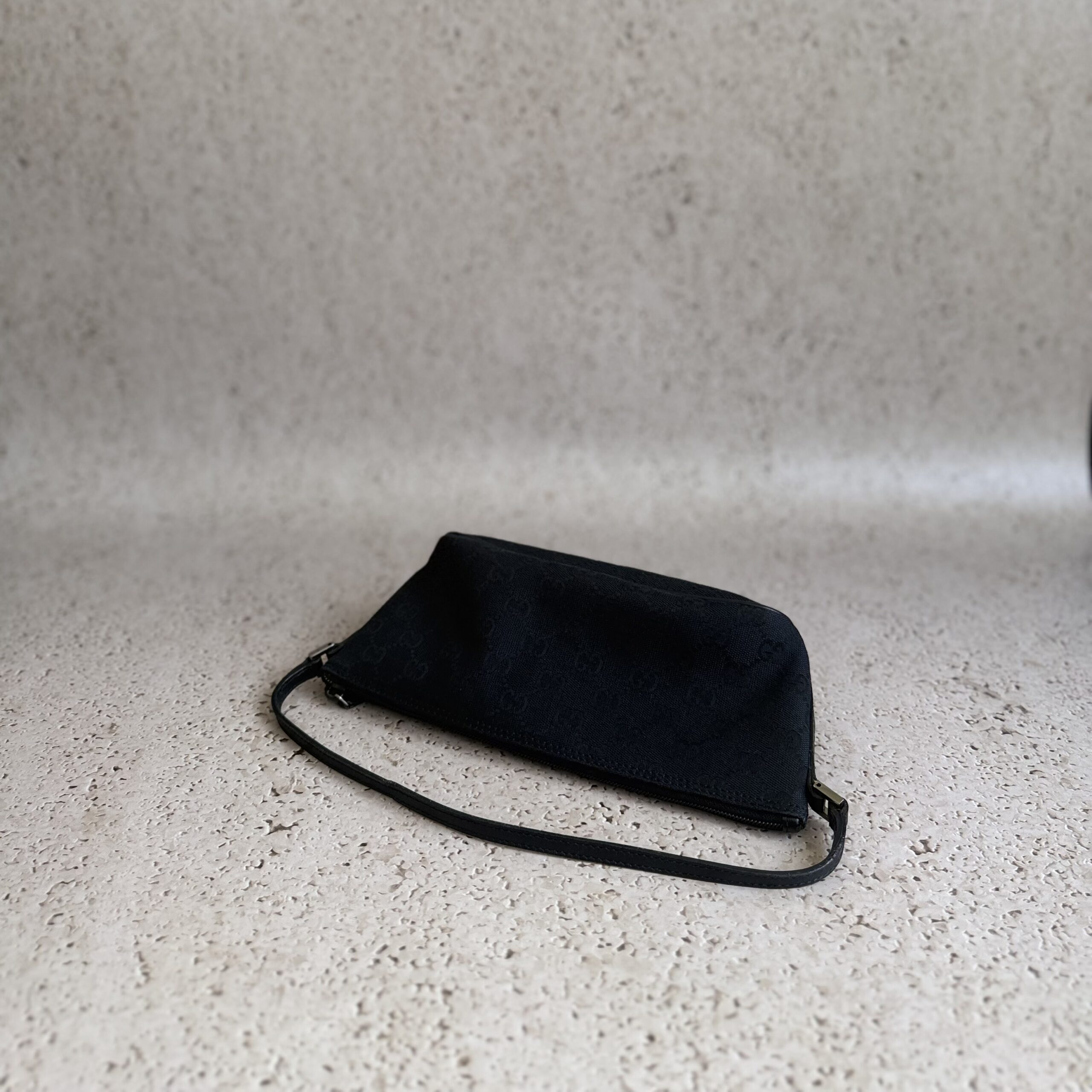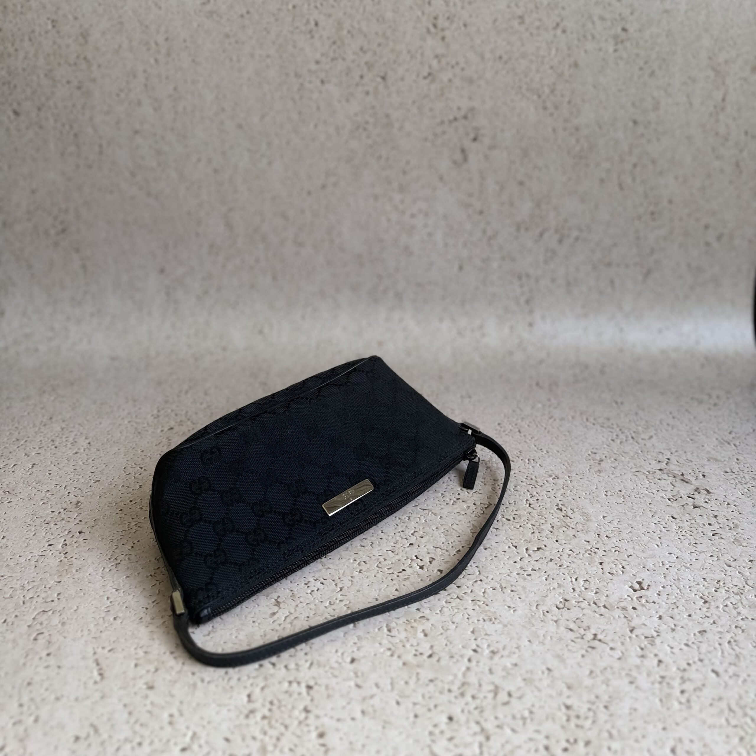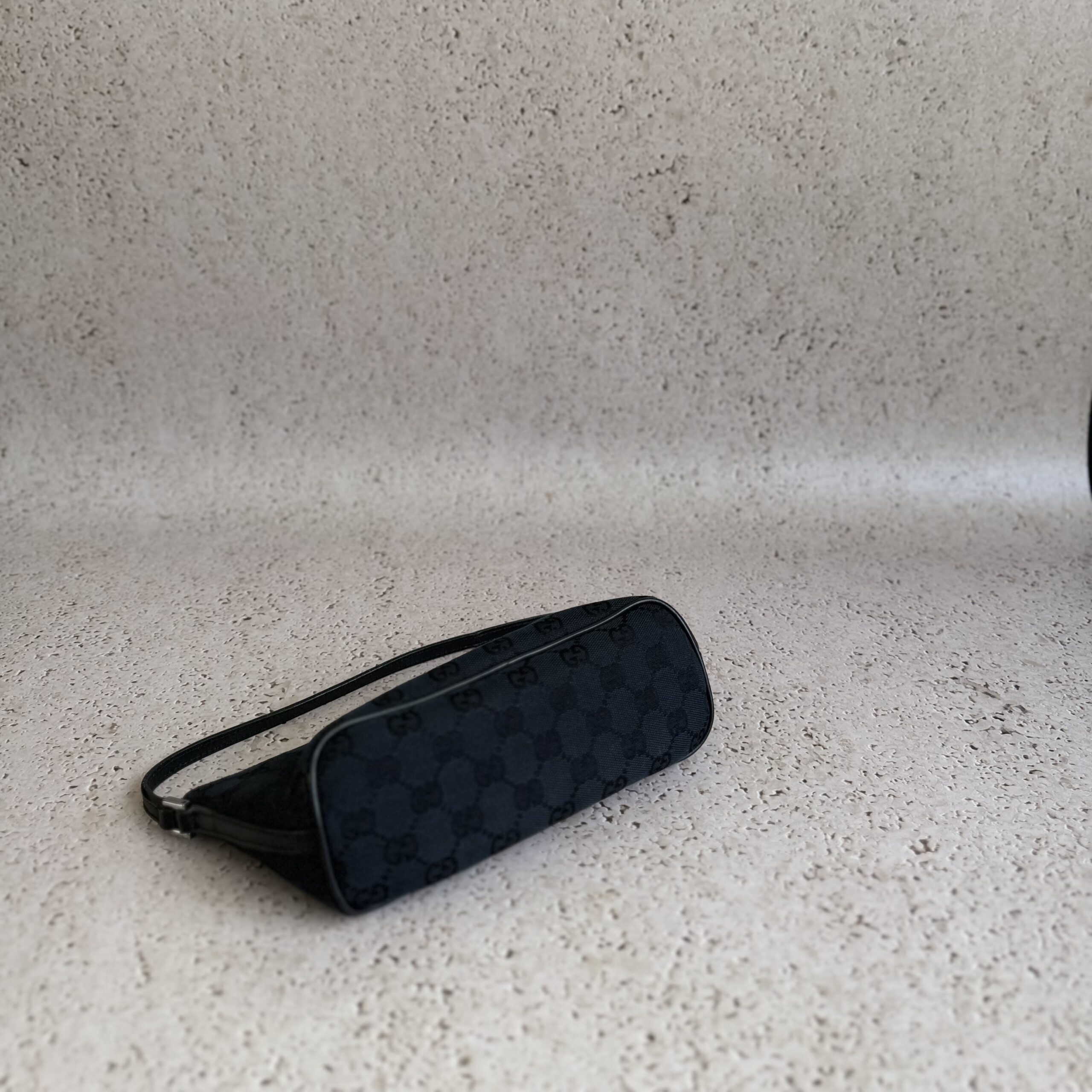 The Gucci Boat Bag in black is a timeless and instantly recognizable piece, crafted from Gucci’s signature GG canvas. The sleek black tones of the canvas give this bag a bold yet sophisticated look, making it a versatile companion for any occasion.