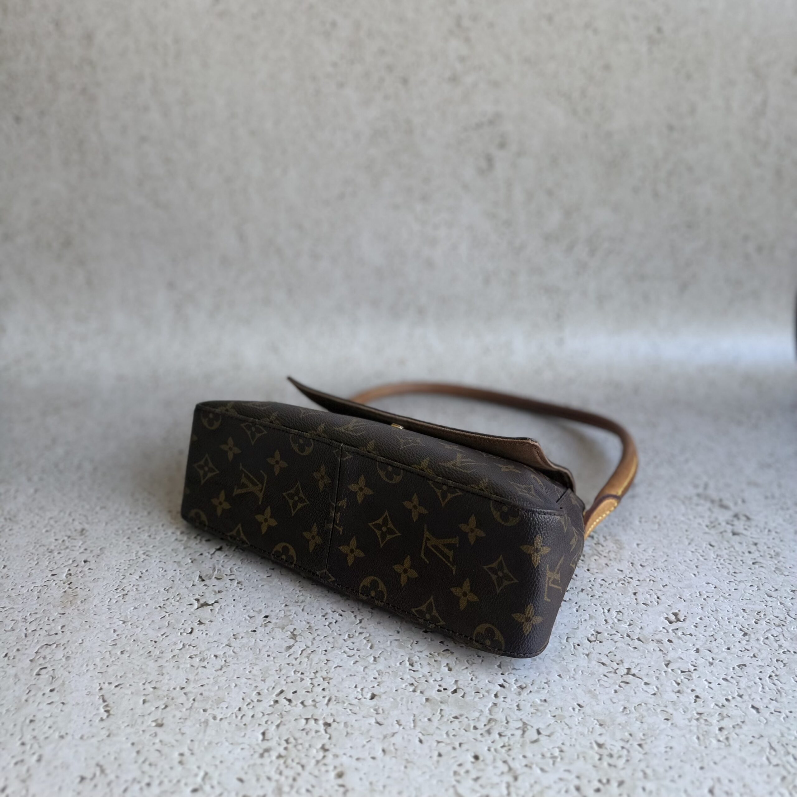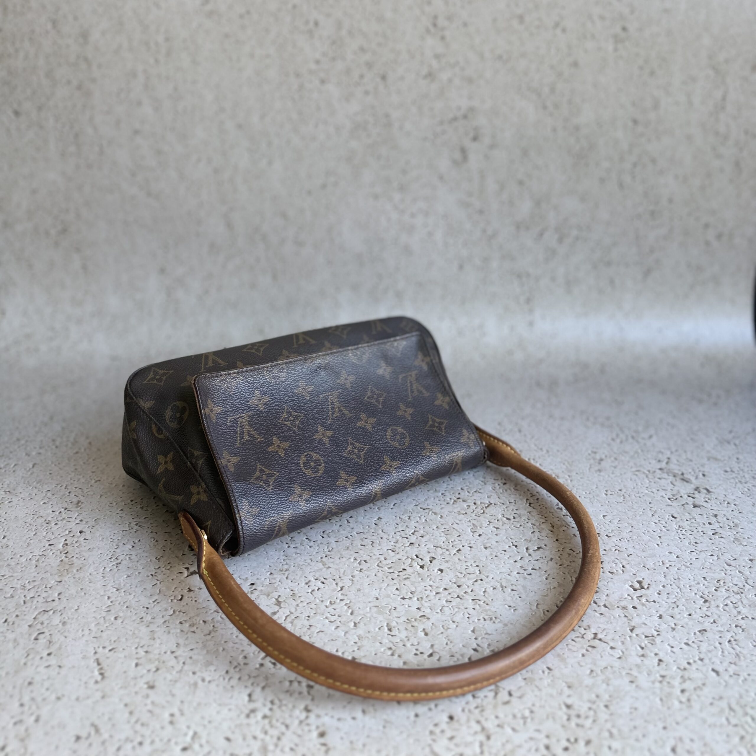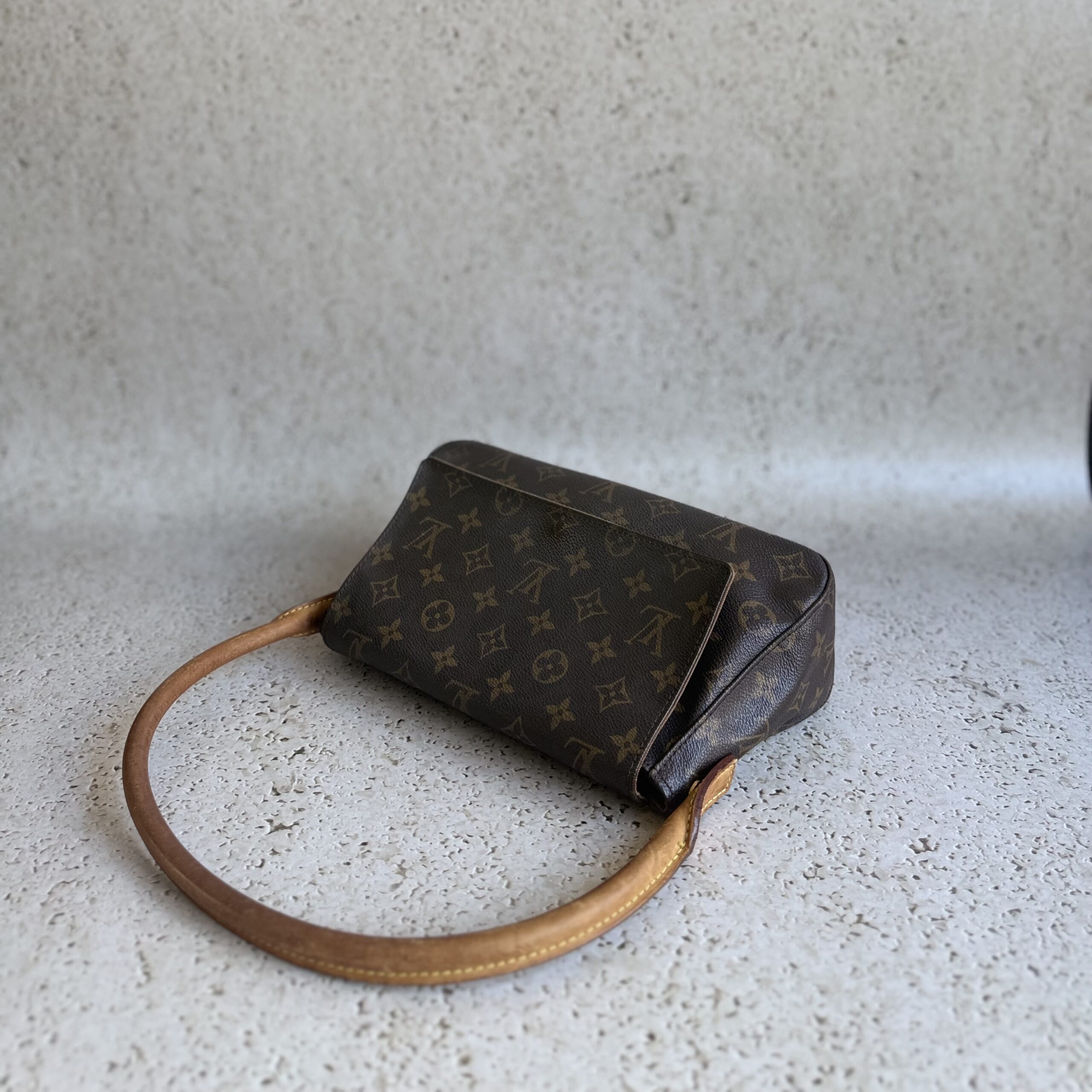 The Louis Vuitton Looping PM is a timeless shoulder bag that features a unique curved shape. Crafted from Louis Vuitton’s signature Monogram canvas, this bag effortlessly combines style with functionality. The natural cowhide leather trim adds a refined touch of luxury to its timeless design. A single shoulder strap ensures easy and comfortable carrying.