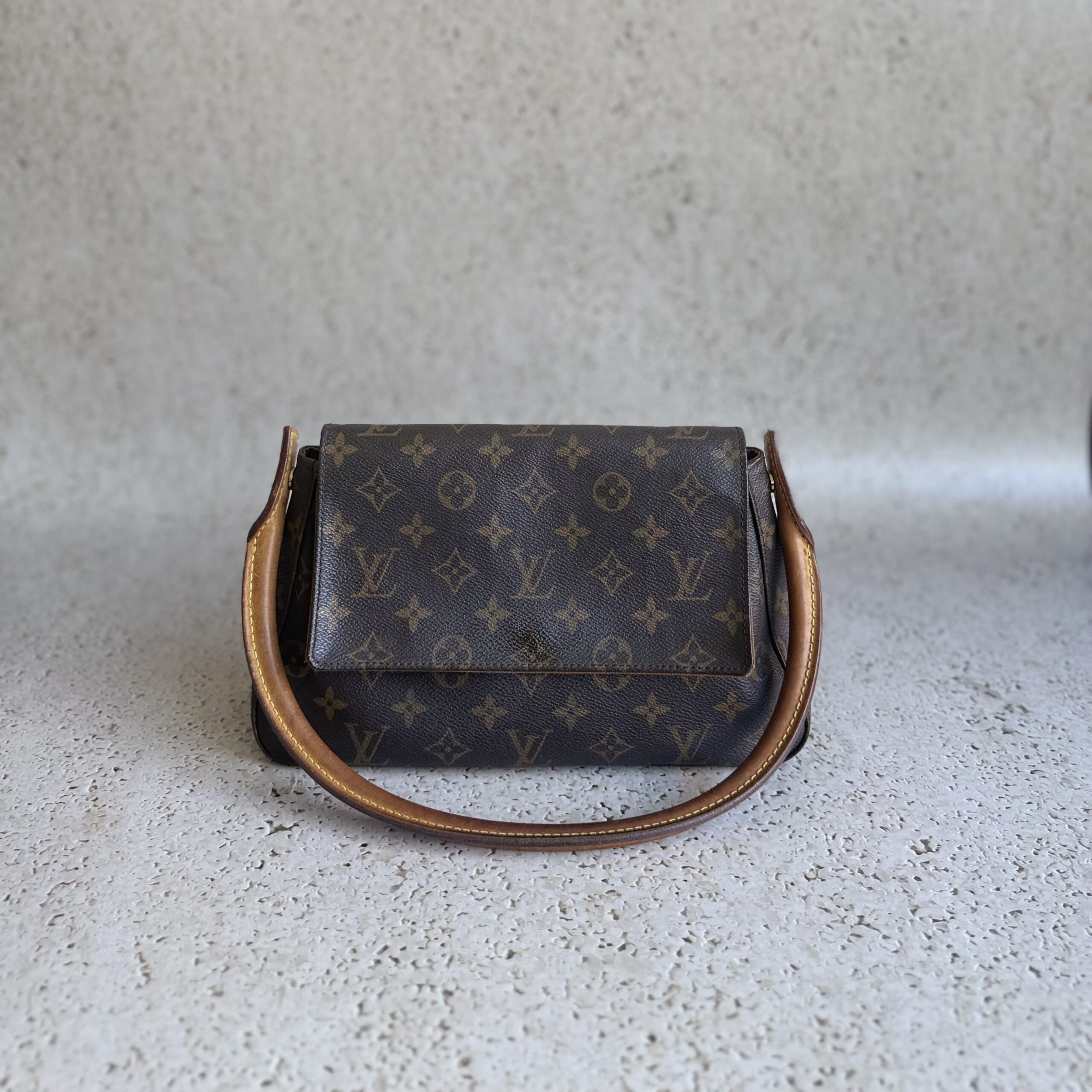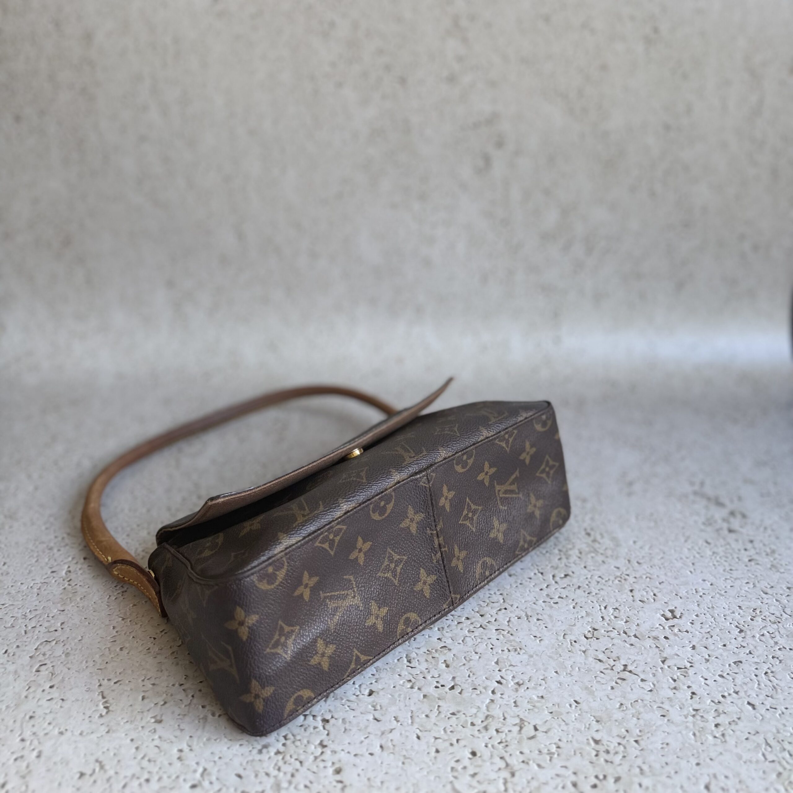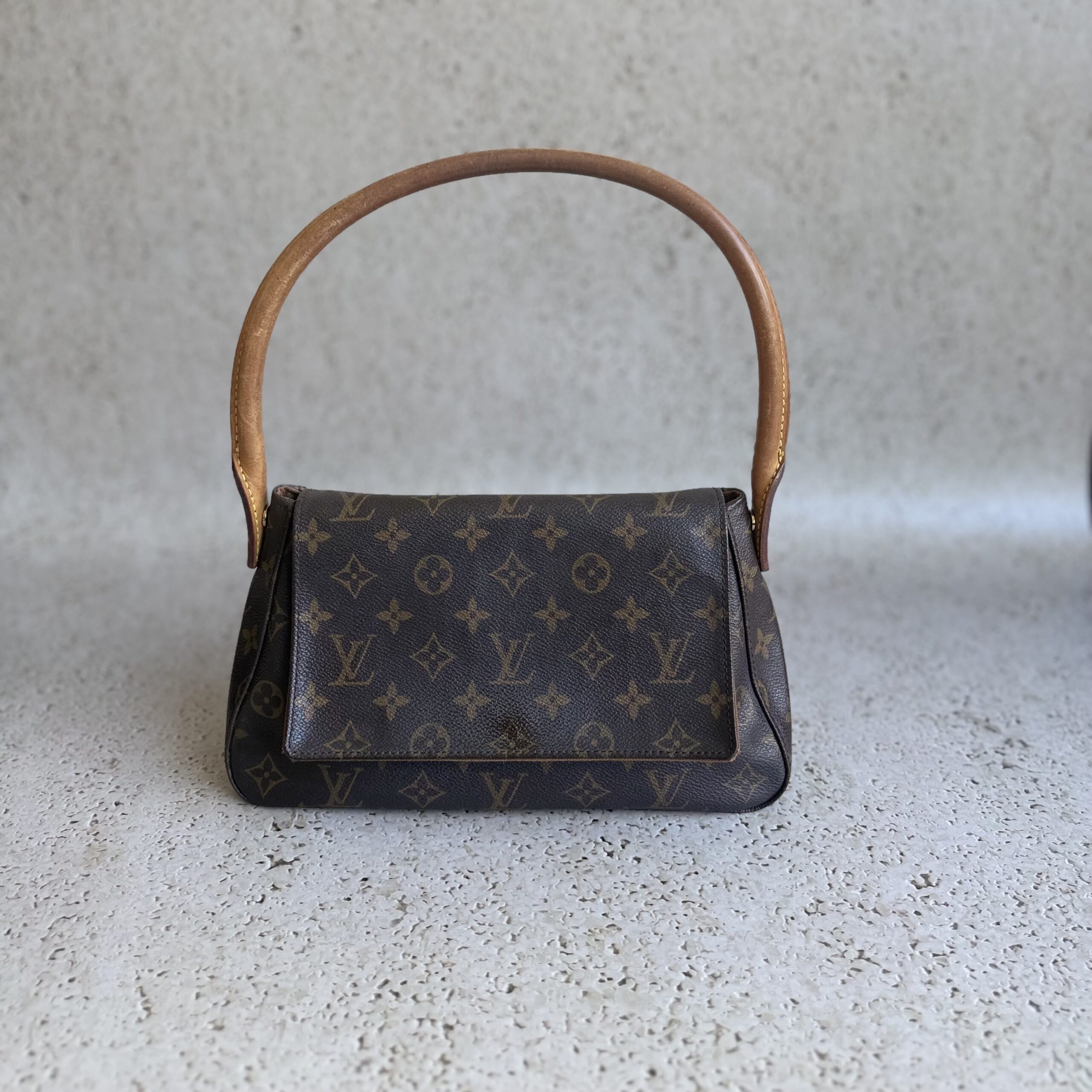 The Louis Vuitton Looping PM is a timeless shoulder bag that features a unique curved shape. Crafted from Louis Vuitton’s signature Monogram canvas, this bag effortlessly combines style with functionality. The natural cowhide leather trim adds a refined touch of luxury to its timeless design. A single shoulder strap ensures easy and comfortable carrying.